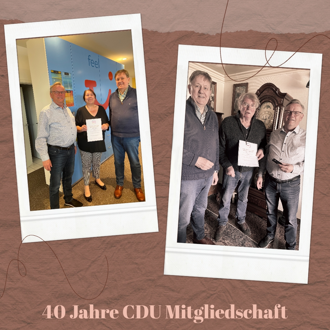 Heute möchten wir einen ganz besonderen Moment zelebrieren. – Die 40-jährige Mitgliedschaft in der CDU von Rita Schmittat, Peter Schüre und Monika Troue.